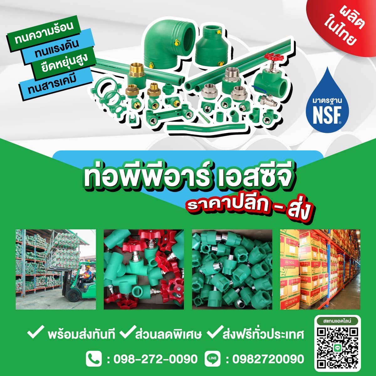 นอกจากนี้ ท่อพีพีอาร์ (PP-R) เอสซีจี ยังผ่านการรับรองมาตรฐานจากสถาบันชั้นนำระดับโลก อย่างมาตรฐาน NSF จากประเทศสหรัฐอเมริกา มาตรฐานเดียวกันกับน้ำดื่มอีกด้วย จึงมั่นใจในความสะอาด ปลอดภัยได้อย่างเต็มที่ 😊